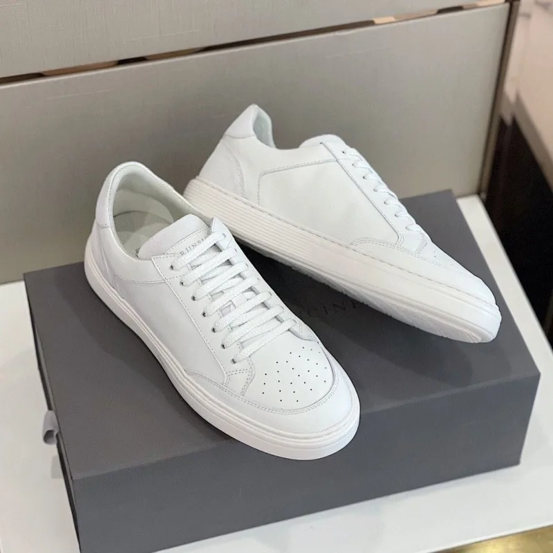 2025 New Luxury Men's Low Top Sneakers Leather Patchwork Minimalist Round Toe Casual Versatile Best Seller Footwear